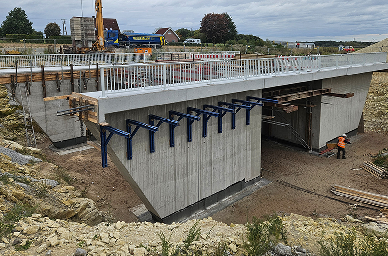 Dabei entsteht das Bauwerk vollständig in klassischer Ortbetonbauweise. Jedes Bauteil wurde vor Ort geschalt und betoniert. Insgesamt verbaute das Bauteam rund 630 m³ Beton und 95 Tonnen Bewehrungsstahl. Die neue Brücke stellt künftig eine wichtige Verbindung zwischen der Bauernschaft Hastehausen und Gladbeck her.