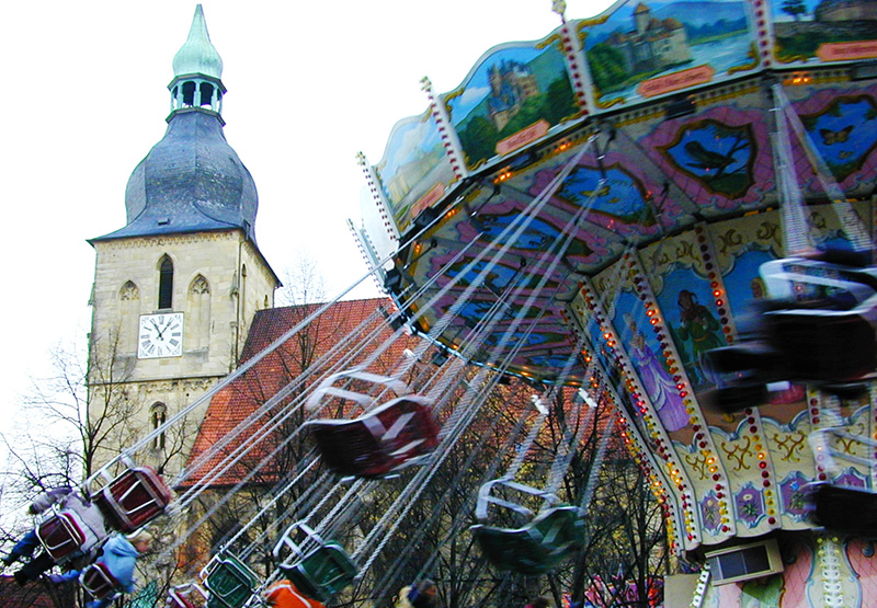 Rund 120 Fahrgeschäfte, Krammarkt- und Kunsthandwerker:innen-Stände sowie gastronomische Angebote füllen und säumen den Stiftsplatz, den Platz rund um die Martini-Kirche, den Kastanienplatz, den Hanhoff, die Schlaunstraße, die Stiftsstraße und die Von-der-Reck-Straße.