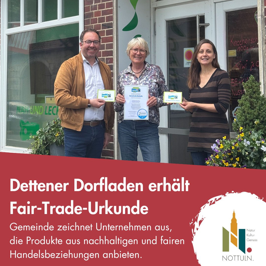 Nach mehrfacher Rezertifizierung feiert Nottuln 2025 das 10-jährige Bestehen als Fairtrade-Gemeinde!